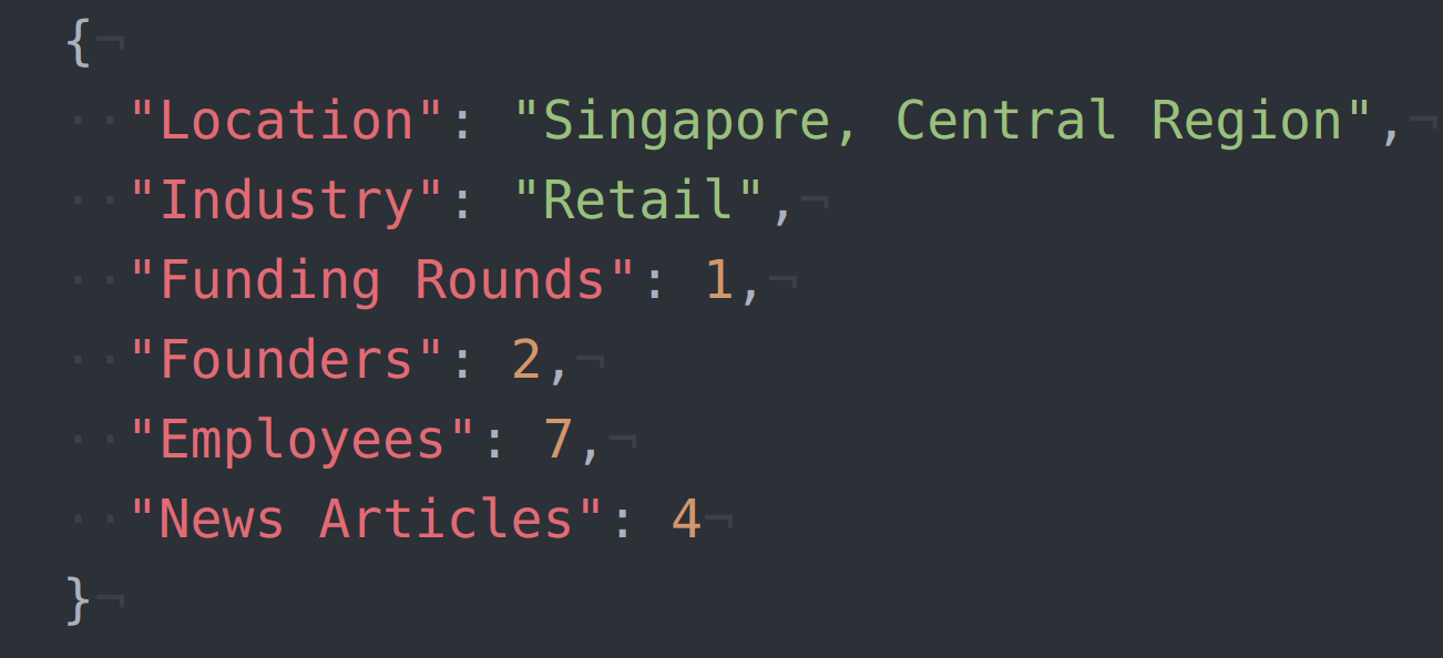Given a fictitious company called Fabric Co we'll see how likely it is to succeed. The company is located in Singapore, Central Region, the industry is Retail, number of Founders is 2, number of funding rounds is 1, number of articles is 4, and number of employees is 7.